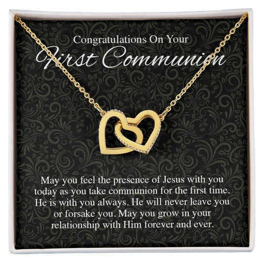 22 Congratualtions On Your First Communion V1 Interlocking Hearts Interlocking Hearts Necklace