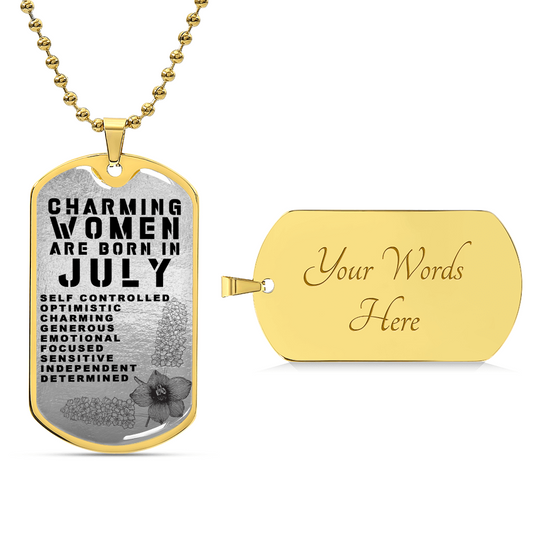 Charming Women Are Born In July Luxury Necklace With Dog Tag Gold - Army Tag Necklace, Dog Tag Necklace