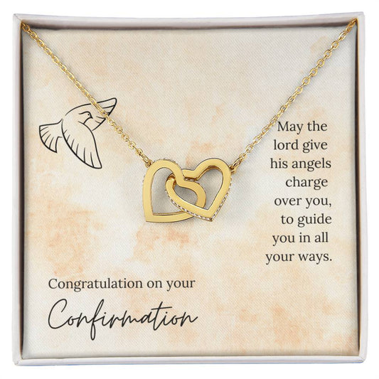 Congratulation On Your Confirmation - May The Lord Give His Angels Charge Over You To Guide You In All Your Ways - Necklace Interlocking Hearts Necklace