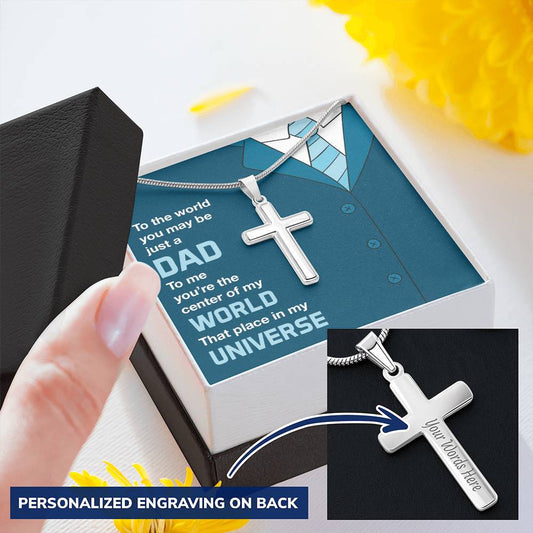 Dad - You're The Center Of My World - Customize Cross Necklace Customize Engraved Cross Necklace