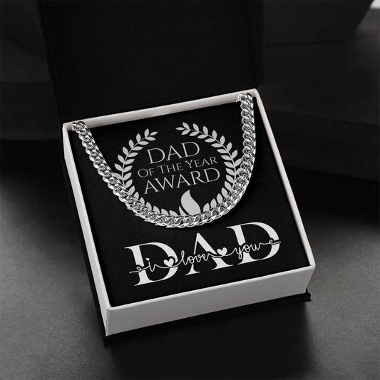 Dad Of The Year Award Dad I Love You Adjustable Link Chain In Silver Or Gold Cuban Link Chain