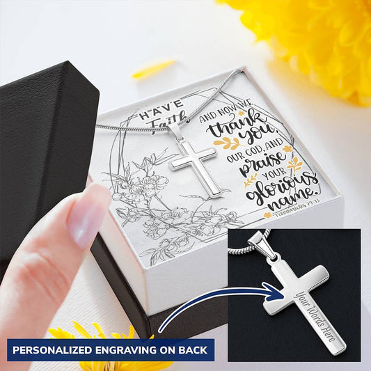 Dad To Son Gifts - Thank You Our God And Praise Your Glorious Name Customize Engraved Cross Necklace