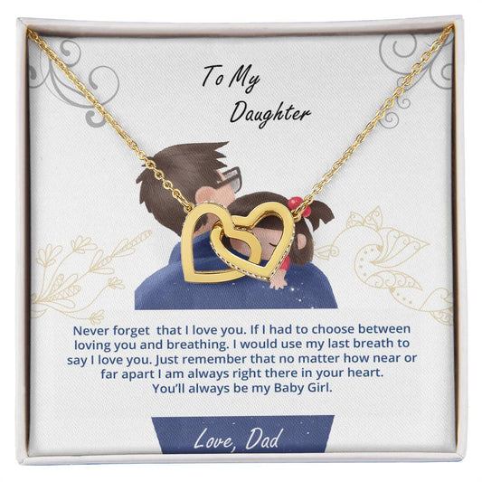 Daughter - My Baby Girl Never Forget That I Love You - Interlockings Heart Necklace Interlocking Hearts Necklace