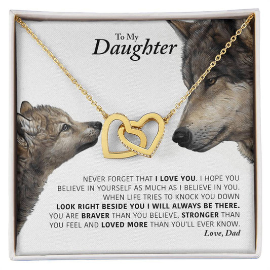 Daughter - This Old Wolf Will Always Have Your Back In Usa Interlocking Hearts Necklace