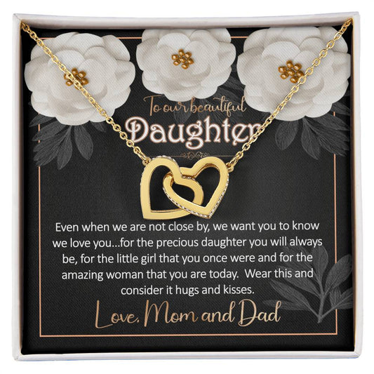 Daughter Away Necklace Gift From Mom And Dad Interlocking Hearts Necklace