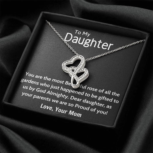 Daughter Gift Parents With Special Message Card Double Heart Necklace Gift Present For Daughter Double Hearts Necklace