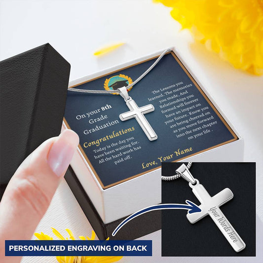 8Th Grade Graduation Boy Customize Engraved Cross Necklace
