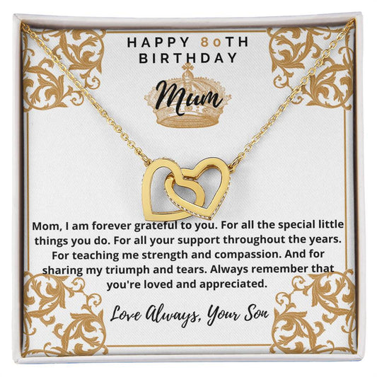 80Th Birthday Mum From Son Interlocking Hearts Necklace