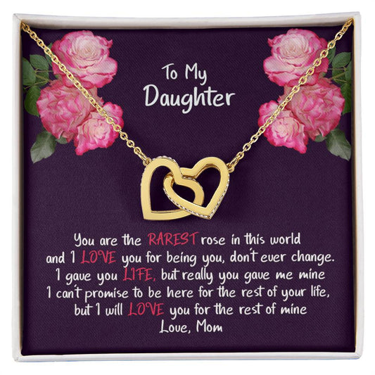 Daughter My Rarest Rose Interlocking Hearts Necklace