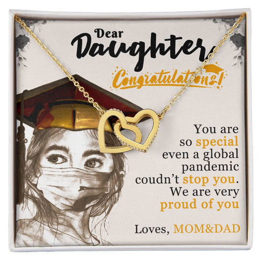 Dear Daughter! Loves Mom&Dad Interlocking Hearts Necklace