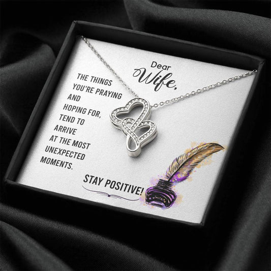 Dear Wife-The Things You're Praying And Hoping For Tend To Arrive At The Most Unexpected Moments. Stay Positive! Double Hearts Necklace