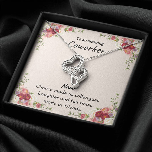 Double Heart - Coworker Leaving - Chance Made Us Colleagues - White Double Hearts Necklace