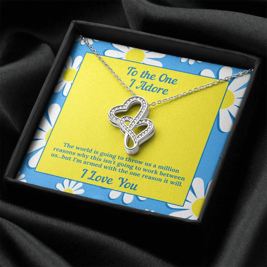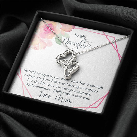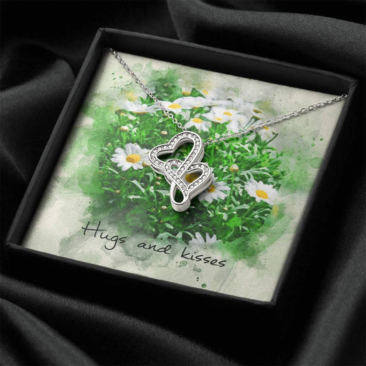 Double Heart Necklace– Daisy Message Card Double Hearts Necklace