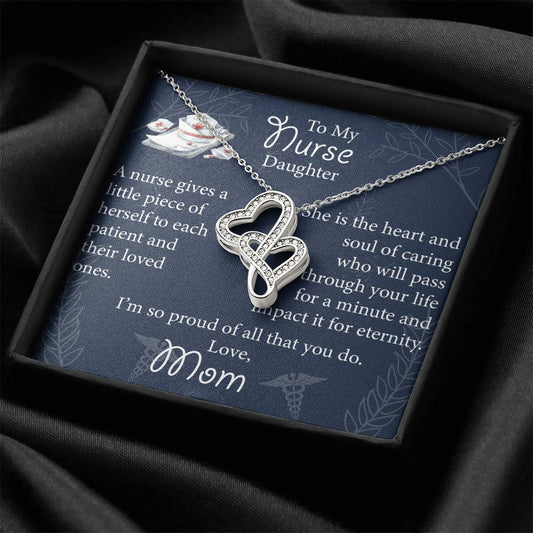 Double Heart Nurse Daughter Necklace - Mothers Day Gift For Nurse - Birthday Gift For Nurse Daughter - Gift Necklace Double Hearts Necklace