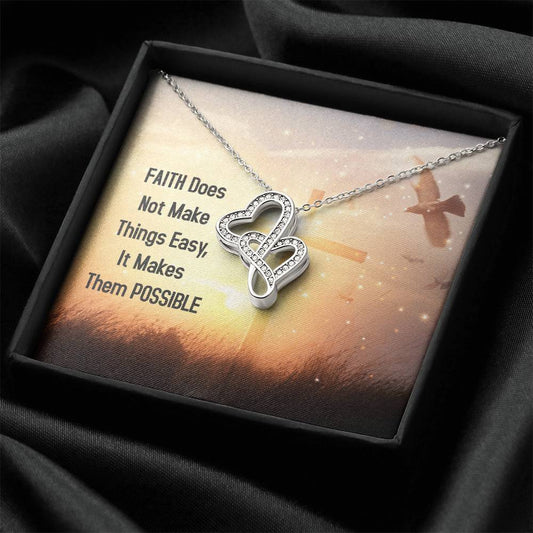 Faith Does Not Make Things Easy It Makes Them Possible Double Hearts Necklace