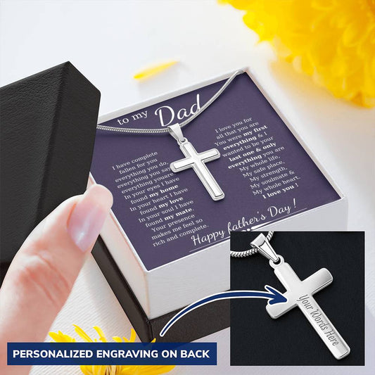 Father's Day Gift For Dad Customize Engraved Cross Necklace