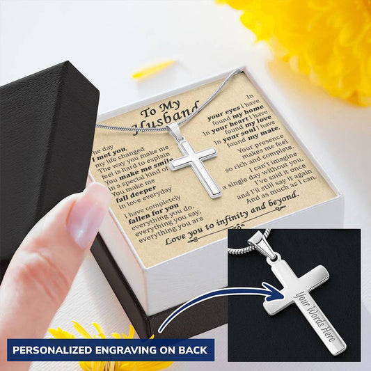 For Husband - Fall Deeper - Cross Customize Engraved Cross Necklace