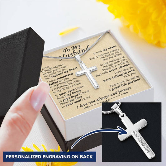 For Husband - Last Forever - Cross Customize Engraved Cross Necklace