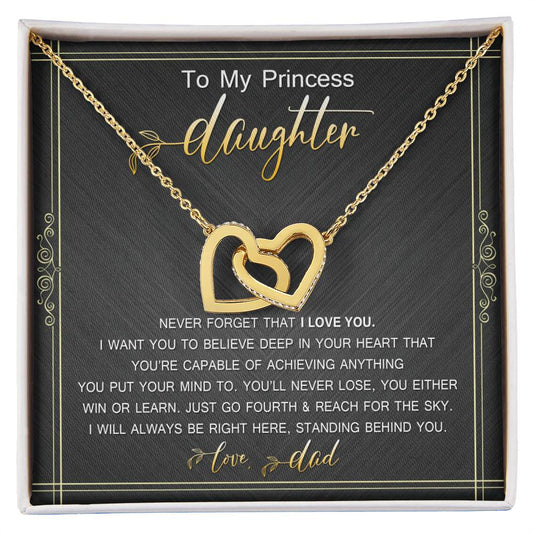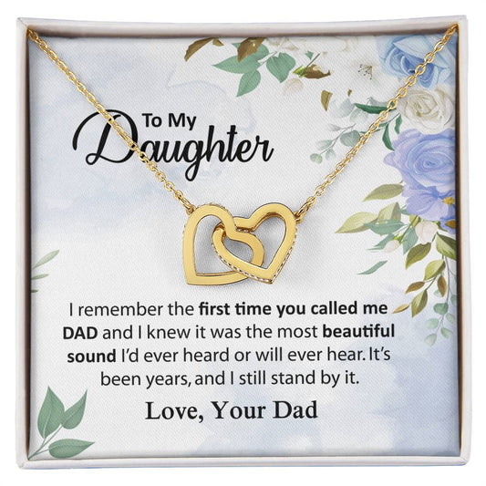 Gift For Daughter From Dad- My Daughter My Sweetheart You Will Always Be To Me Interlocking Hearts Necklace