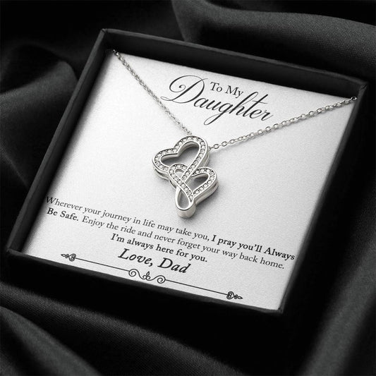 Gift For Daughter From Dad Double Heart Necklace With Message Card Double Hearts Necklace