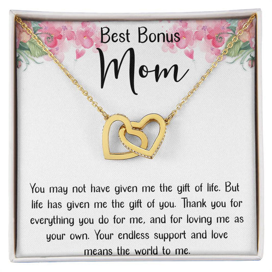 Best Bonus Mom Interlocking Hearts Necklace Message Card