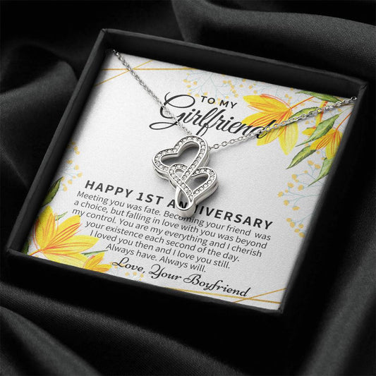 1St Anniversary Gift For Girlfriend Personalized Anniversary Gift One Year Anniversary Gifts 1 Year Anniversary Gift F Double Hearts Necklace