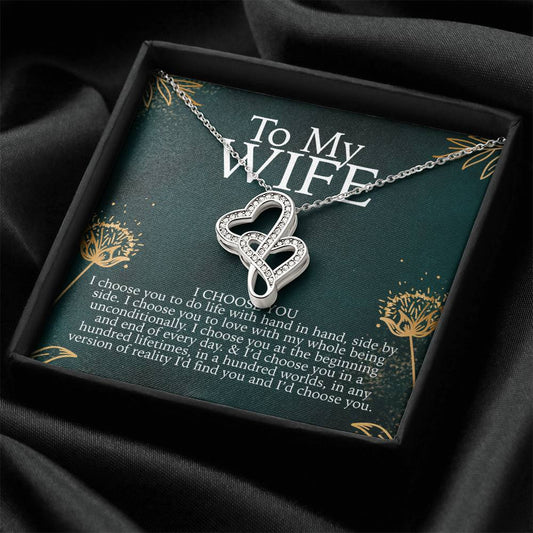 To My Wife Double Hearts Pendant Necklace Double Hearts Necklace