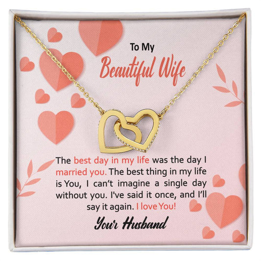 To My Wife Necklace -I Will Love You Forever Interlocking Hearts Necklace