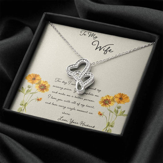 To My Wife The Day I Met You - Daisy Double Hearts Necklace