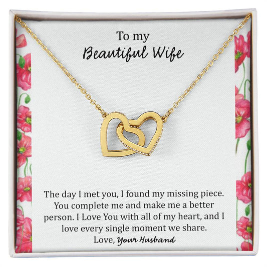 To My Wife The Day I Met You - Floral Interlocking Hearts Necklace
