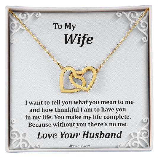 To My Wife Without You I Am Nothing Interlocking Hearts Necklace
