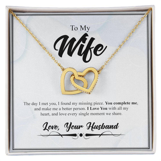 To My Wife- You Complete Me- Interlocking Heart Necklace Interlocking Hearts Necklace