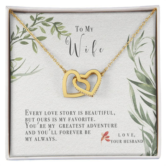 To My Wife-Ours Is My Favorite Love Story-Two Hearts Necklace Interlocking Hearts Necklace