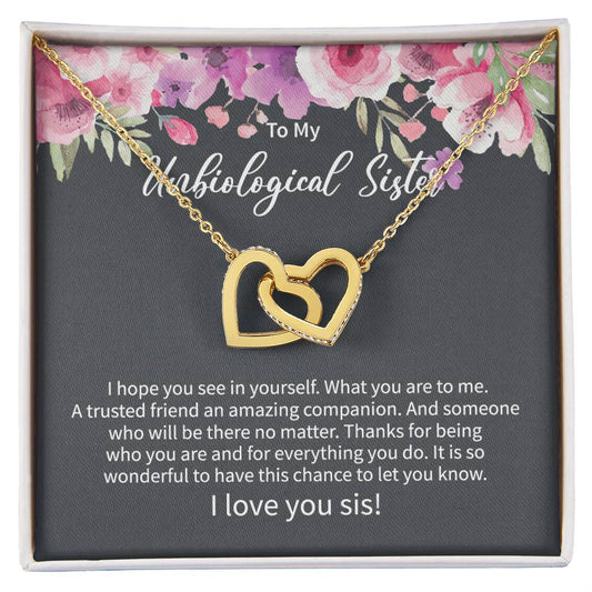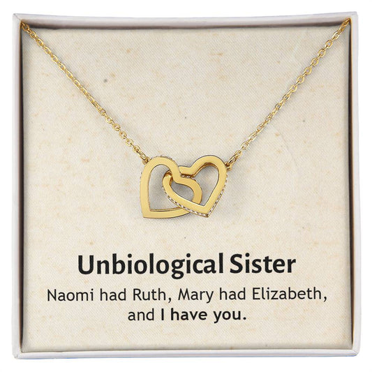 Unbiological Sister Gift Interlocking Hearts Necklace