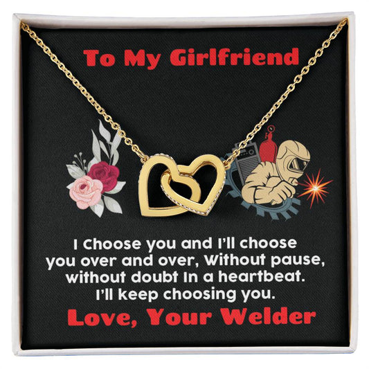 Welder'S Girlfriend Interlocking Hearts Necklace