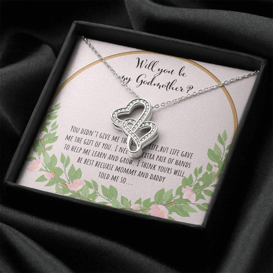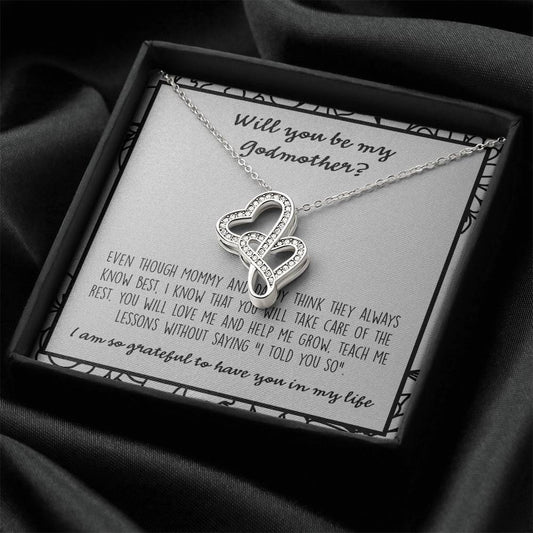 Will You Be My Godmother Double Hearts Necklace