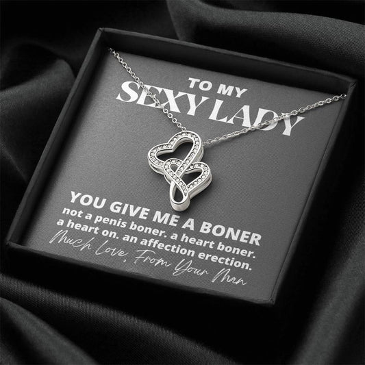 You Give Me A Heart Boner An Affection Erection Funny & Sarcastic Love For Her Mature Gag Gif Double Hearts Necklace