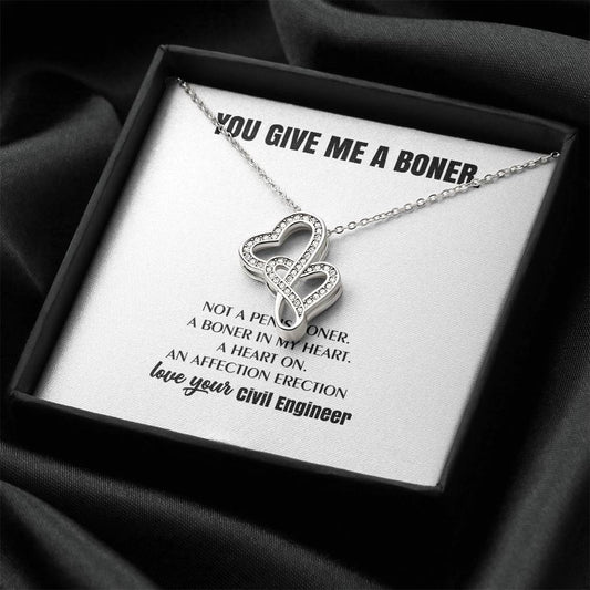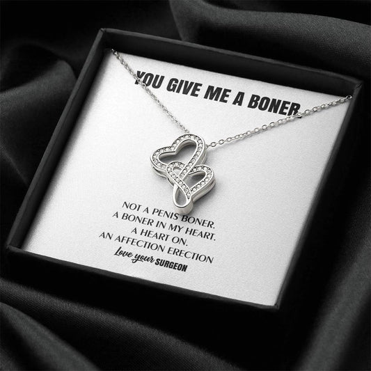 You Give Me A Boner Necklace 1 Double Hearts Necklace