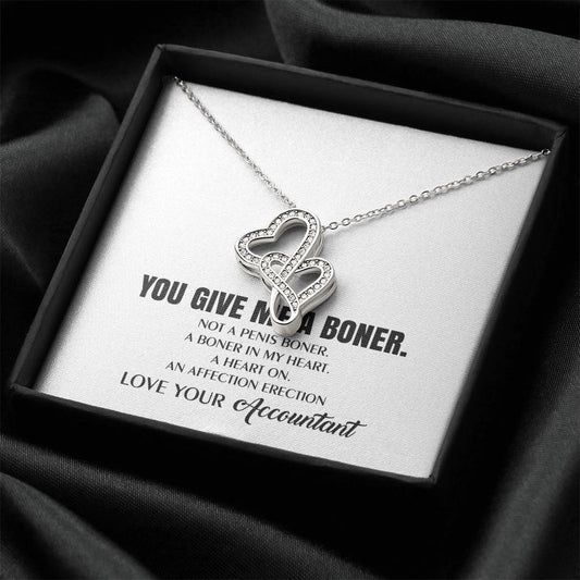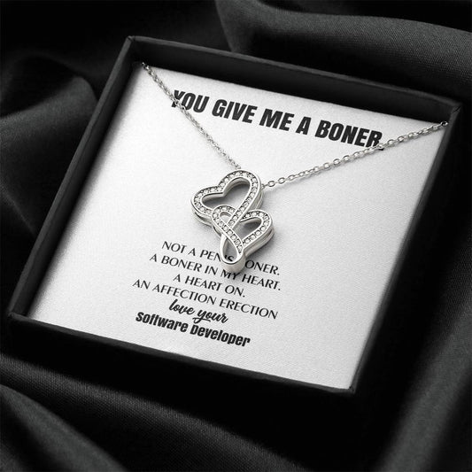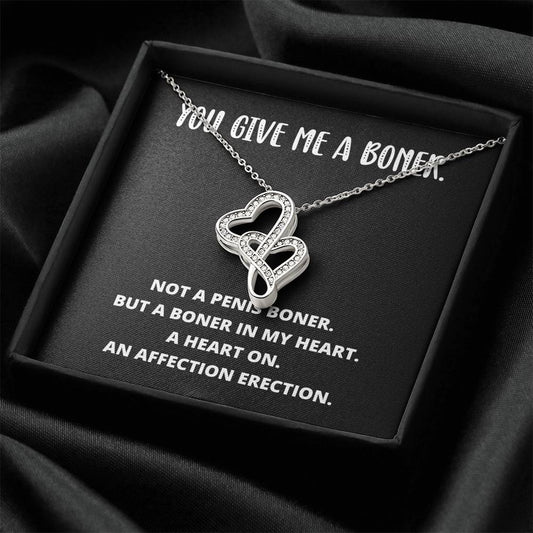 You Give Me A Boner. Not A Penis Boner. But A Boner In My Heart. A Heart On. An Affection Erection Double Hearts Necklace