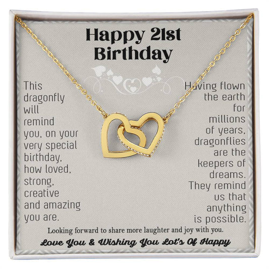 21St Birthday Dragonfly Necklace Gift Happy 21St Birthday Gifts For Her Best Friend Daughter Sister Niece Auntie Necklace Happy 21 Birthday Birthday Necklace Interlocking Hearts Necklace