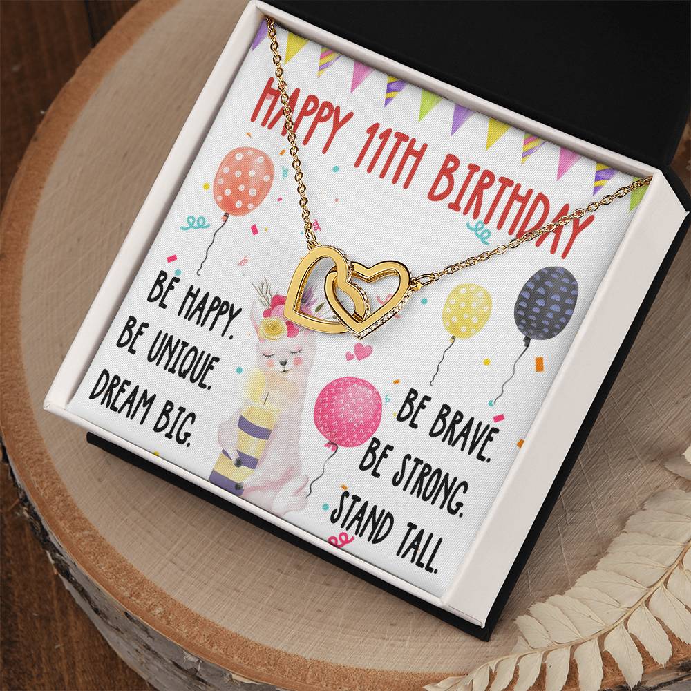 11Th Birthday Necklace Gift For Girl Daughter Birthday Gift For 11 Years Old Teen Birthday Gift Cute Llama Interlocking Hearts Necklace