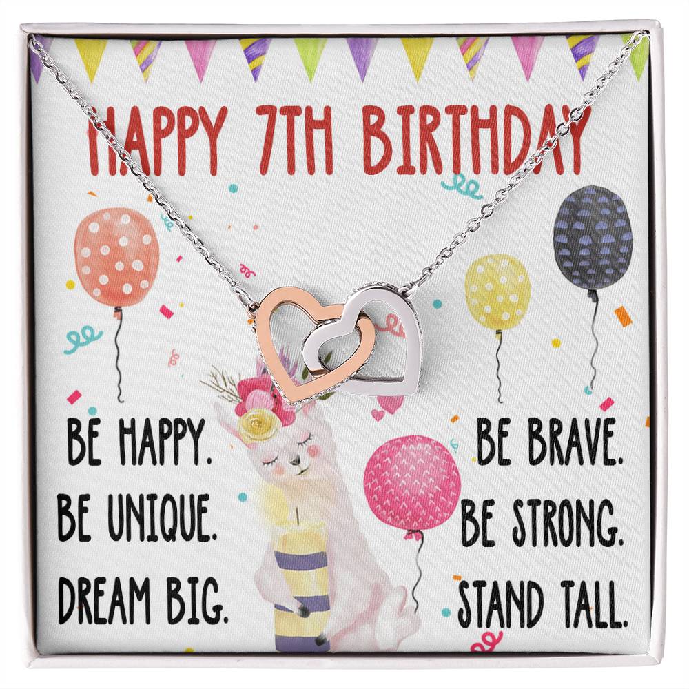 7Th Birthday Necklace Gift For Girl Daughter Birthday Gift For 7 Years Old Teen Birthday Gift Cute Llama Interlocking Hearts Necklace