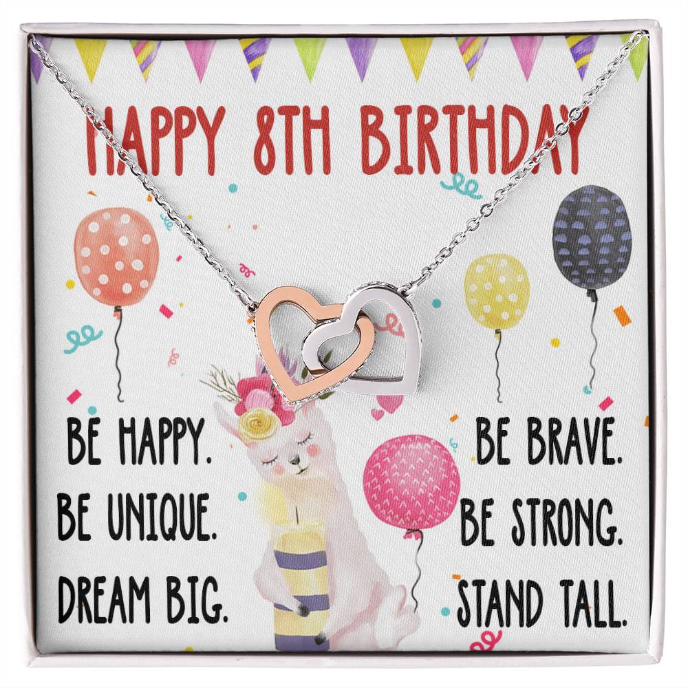 8Th Birthday Necklace Gift For Girl Daughter Birthday Gift For 8 Years Old Teen Birthday Gift Cute Llama Interlocking Hearts Necklace