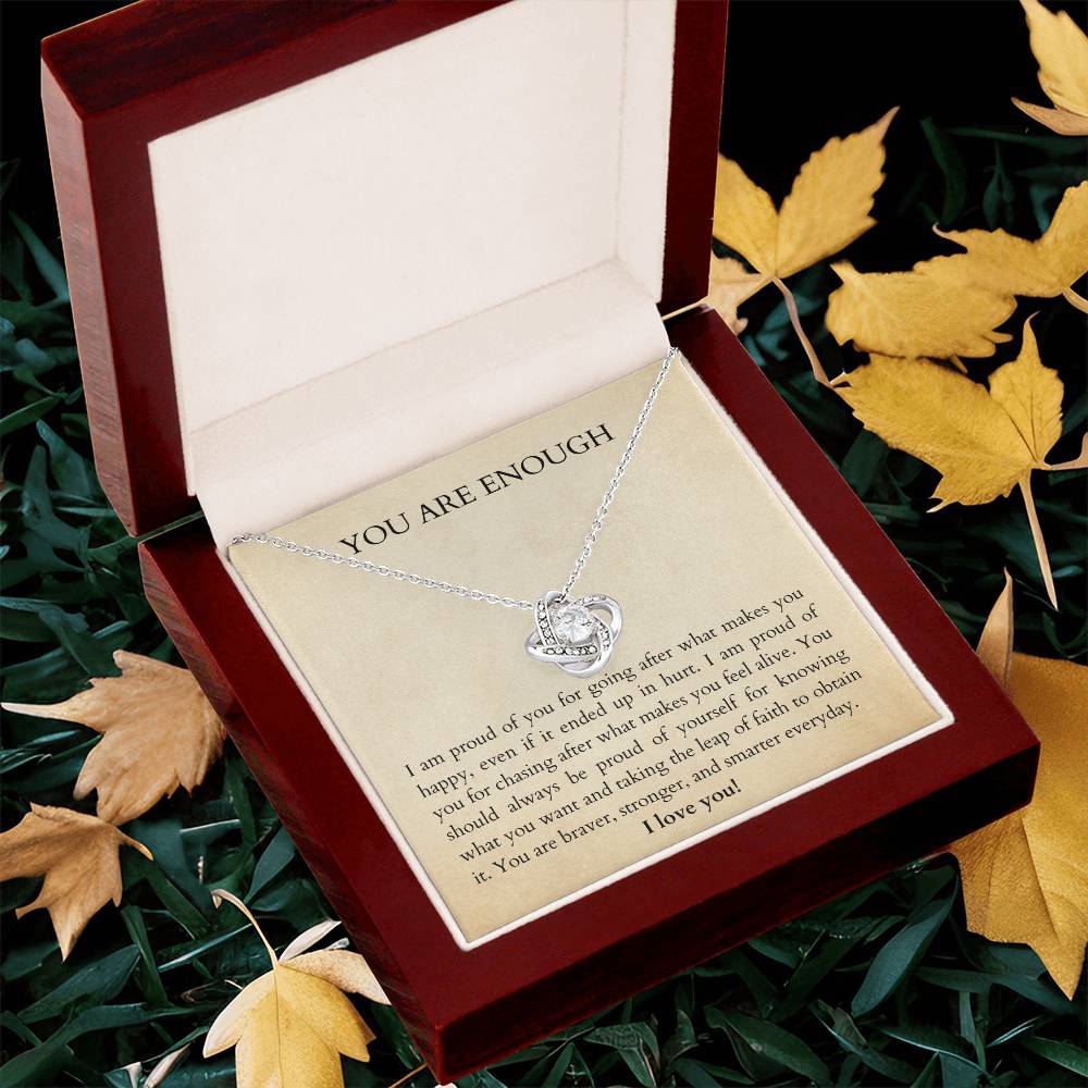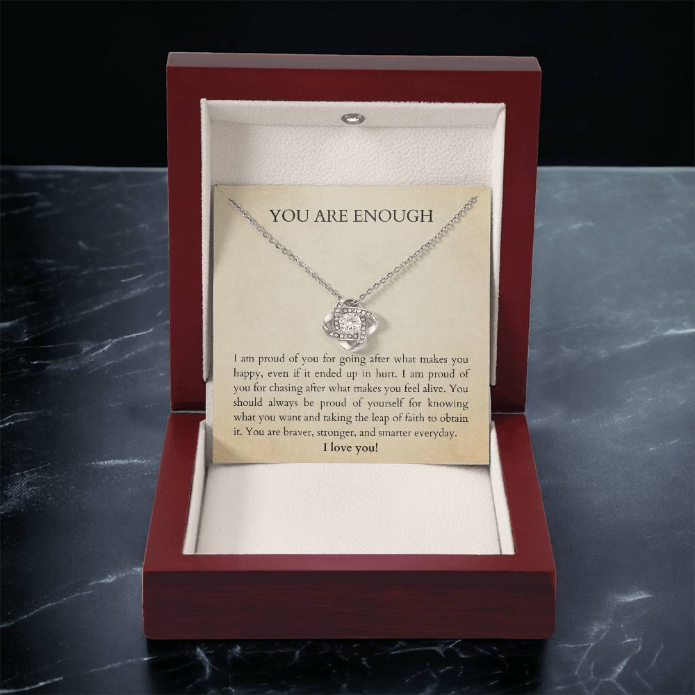 Affirm Gift For Bestie. You Are Enough. You Are Loved. Gift Idea For Bestie. Affirm Necklace. Words Of Wisdom Gift. Gift Of Encoura Love Knot Necklace