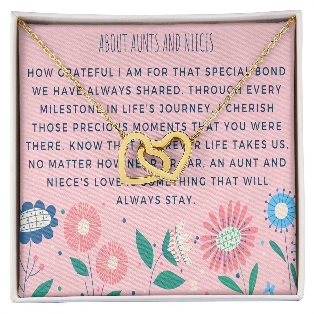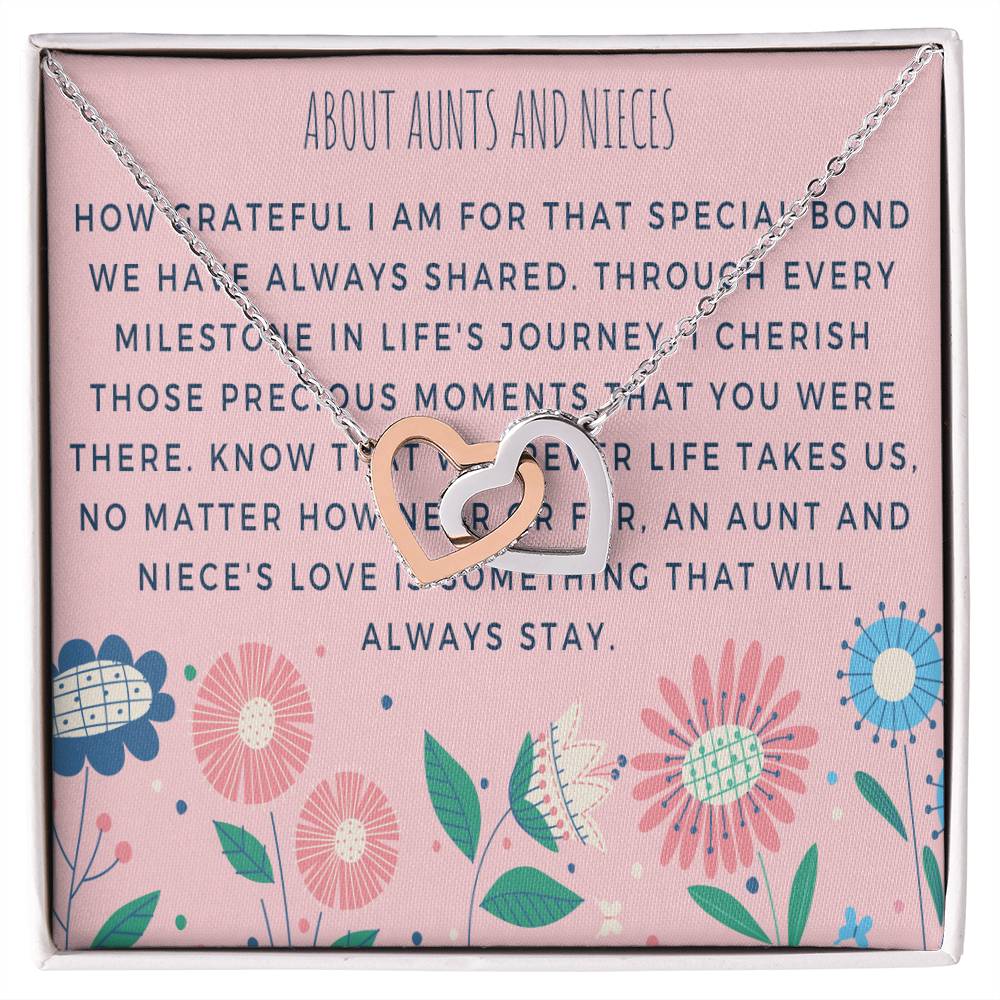 Aunt-Niece Necklace - Heartfelt Card & Jewelry Gift For Birthday Holiday Interlocking Hearts Necklace