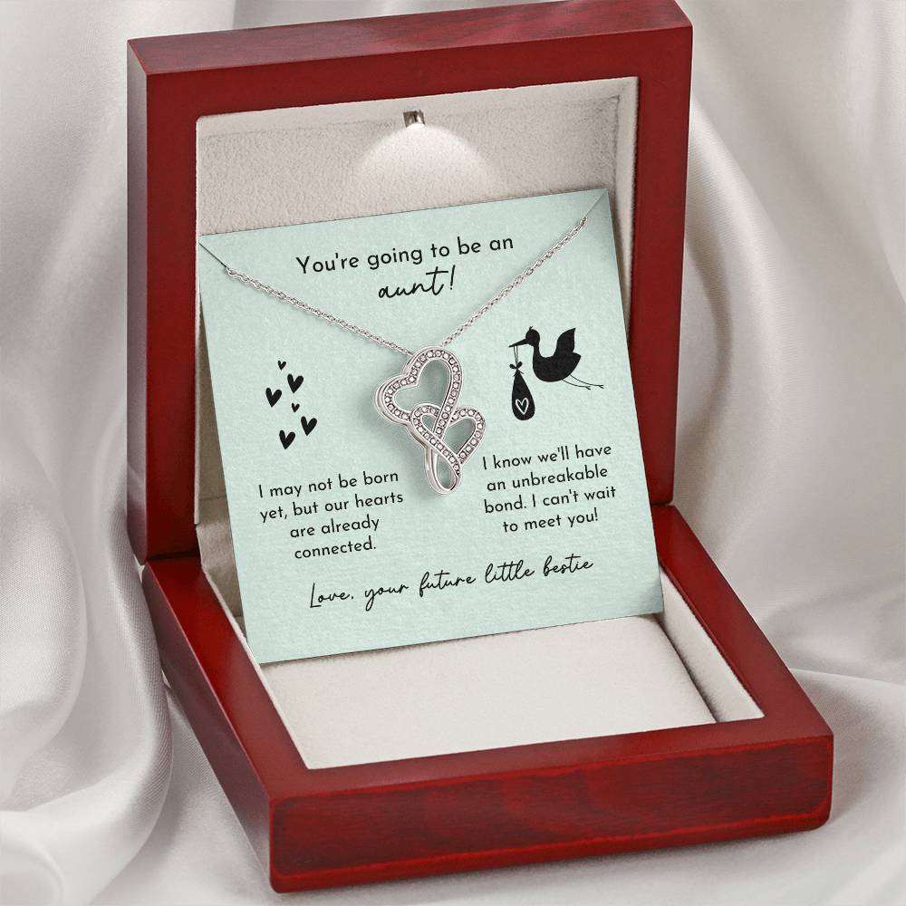 Aunt To Be Birth Announcement Double Hearts Mint Stork Double Hearts Necklace