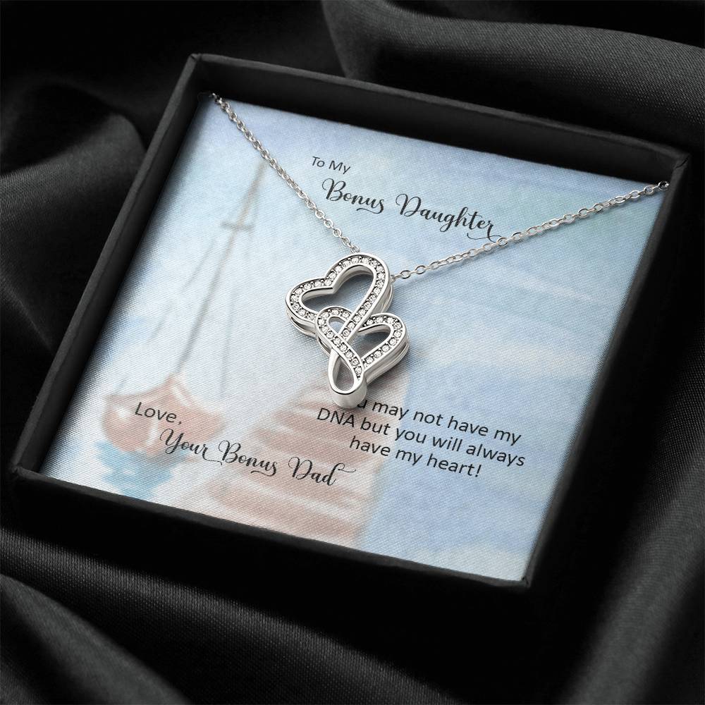Bonus Daughter From Bonus Dad No Dna But You Have My Heart 4 Double Hearts Necklace