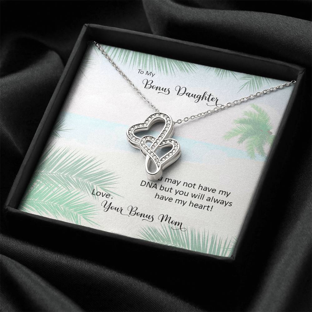 Bonus Daughter From Bonus Mom No Dna But You Have My Heart 4 Double Hearts Necklace