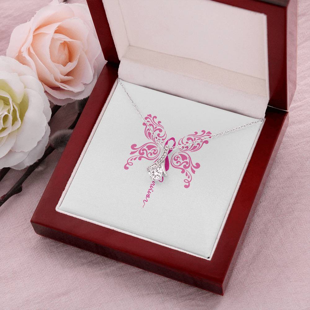 Celebrate Her And Life Pink Breast Cancer Survivor Ribbon Butterfly Cz Gift Necklace For Her Alluring Beauty Necklace