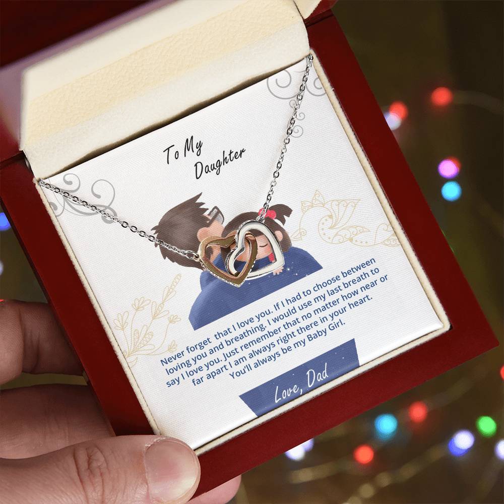 Daughter - My Baby Girl Never Forget That I Love You - Interlockings Heart Necklace Interlocking Hearts Necklace